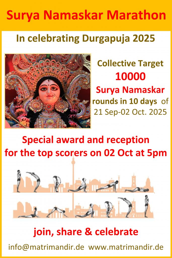 In celebrating Durgapuja festival 2025, we are delighted to announce a special yogic marathon of Surya Namaskar. Learn More