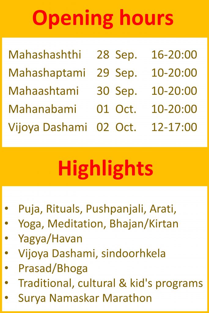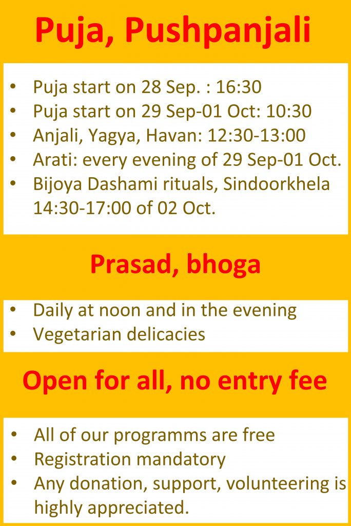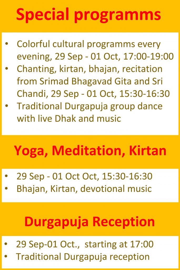 Durgapuja inaugural reception on 29. September at 16:30 in the durgapuja venue.
