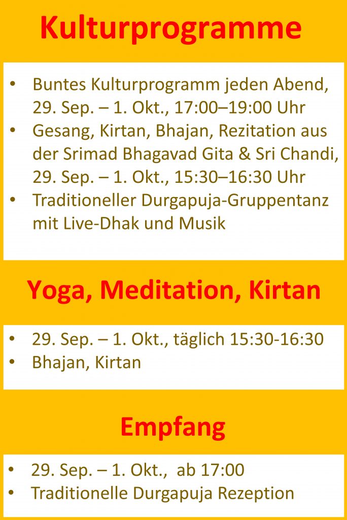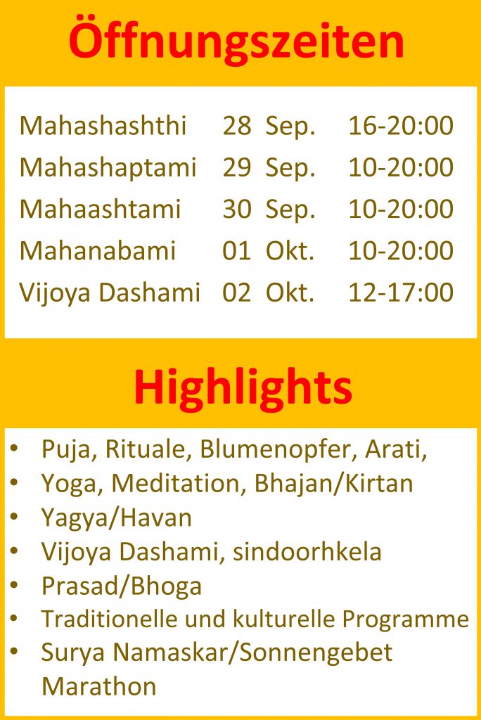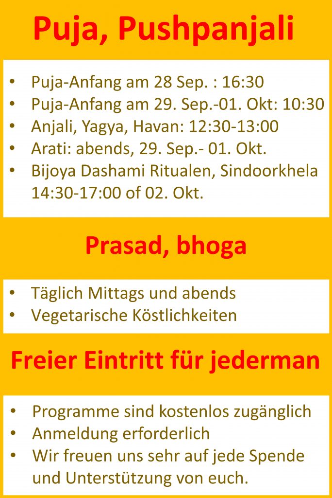 Durgapuja Eröffnung Rezeption am 29. September um 16:30 Uhr in the durgapuja venue.
